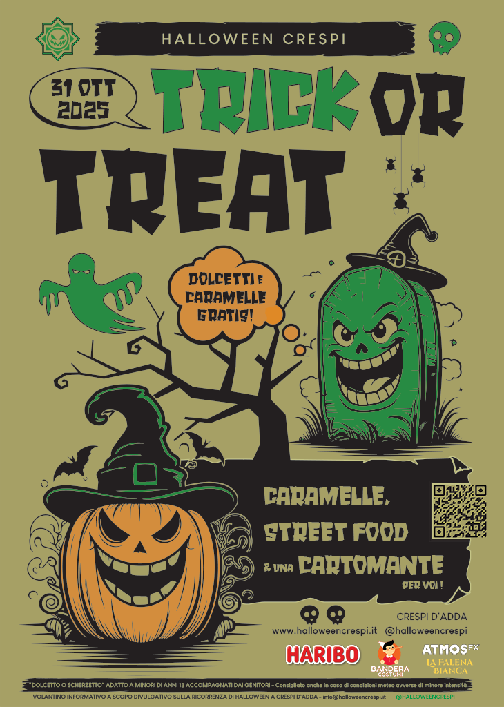 Halloween Crespi prende vita grazie alla passione e alla creatività di residenti, visitatori, appassionati e realtà del territorio, che ogni anno contribuiscono a rendere speciale la celebrazione di questa ricorrenza. Un ringraziamento sincero anche ai partner che, con il loro sostegno e la loro fiducia nei confronti dei cittadini, aiutano a mantenere viva la magia di Halloween nel Villaggio.